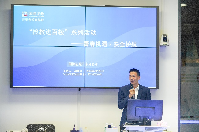 2025年6月25日,由国海证券主办、广州华商职业学院金融协会承办的“青春机遇 安全护航”投教讲座在创科313顺利举行。本次活动聚焦“防范金融诈骗”与“资本市场机遇”两大核心议题,为在校学生带来了一场兼具实用性与前瞻性的金融知识盛宴。