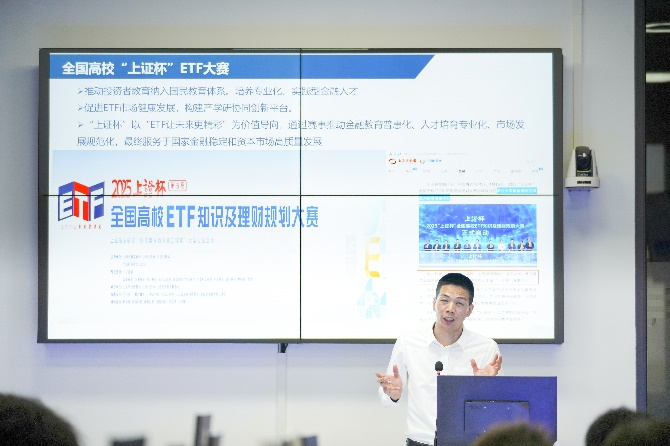 在“资本市场机遇”板块,胡老师结合宏观政策脉络,深入解读了“新质生产力”与“消费新常态”下的投资逻辑。他指出,当前政策聚焦新市民群体、数字化转型与绿色经济,Z世代的悦己经济、Y世代的耐用品升级、银发经济的健康需求,都是资本市场的新增长点。胡老师以港股“新消费”龙头涨幅数据为例,分析了宠物经济、新能源汽车、适老化改造等领域的投资潜力,同时强调“指数投资”对普通投资者的优势,建议通过ETF工具参与资本市场。他还以碳中和投资顾问、乡村振兴股权基金管理等新兴岗位为例,鼓励学生拓宽职业视野,建议学生通过考取证券从业资格证夯实理论基础,并积极参与“上证杯”ETF大赛等实践活动。