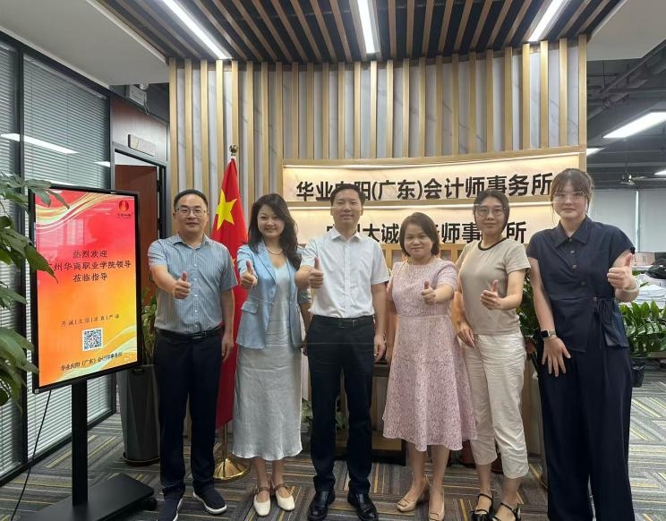 为深化产教融合,创新协同育人机制,2025年10月20日,广州华商职业学院赵永锋副校长、产教融合办公室王克明主任、数字财经学院杨玲院长和柳晓倩老师访问华业向阳(广东)会计师事务所,双方就共建产业学院、深化人才培养与实践教学合作举行了富有成效的洽谈。此行旨在推动校企合作迈向更深层次、更宽领域,共同培育适应行业需求的高素质技术技能型财经人才。