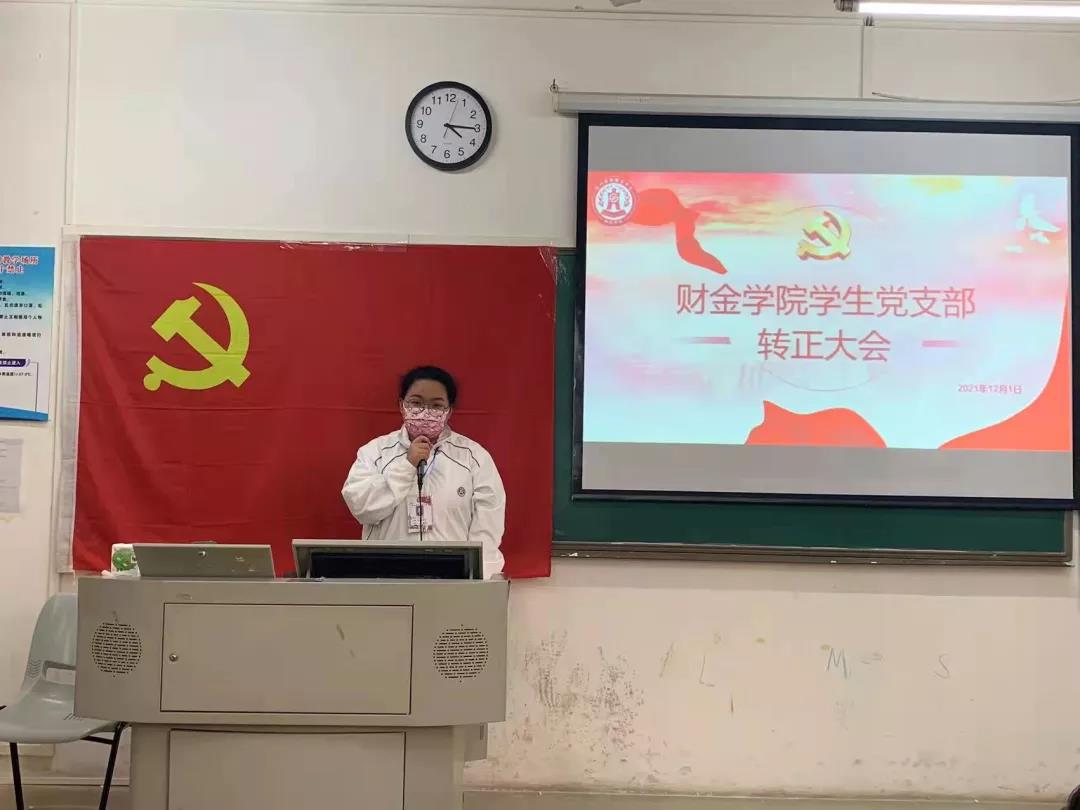 2021年12月1日中午12:00于博学楼C501举行财金学院学生党支部转正大会,参赛人员有财金学院学生党支部全体党员预备党员及其入党介绍人。