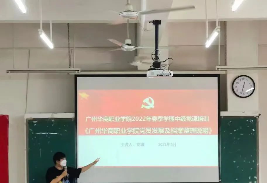 首先刘潇老师围绕广州华商职业学院党员发展及档案整理说明“党员发展”、“档案整理说明”两个方面,为入党积极分子讲解了党员的发展流程以及入党所需注意事项。