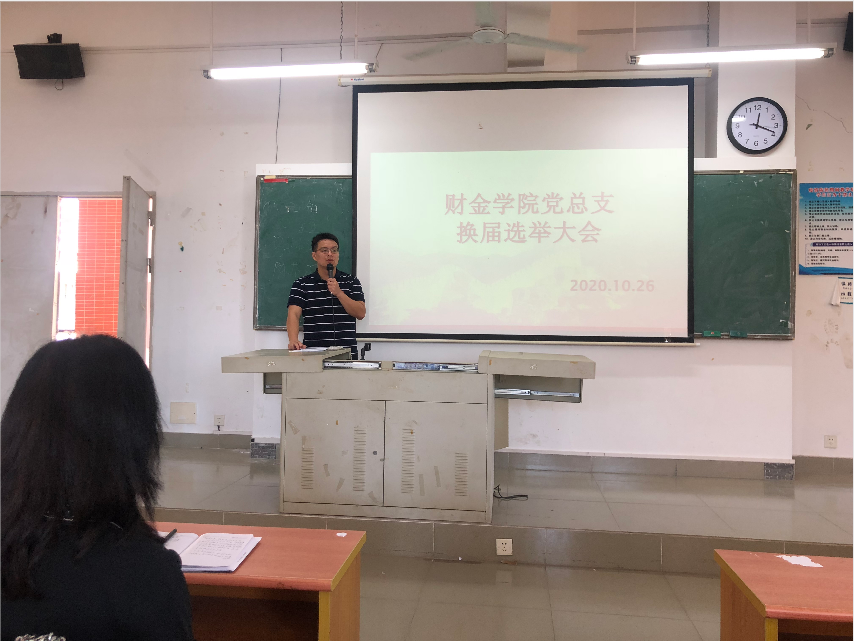 10月26日中午,财金学院党总支在博A507召开换届选举大会,会议由党总支副书记金新凯同志主持,教师党员共21人参加了本次会次。