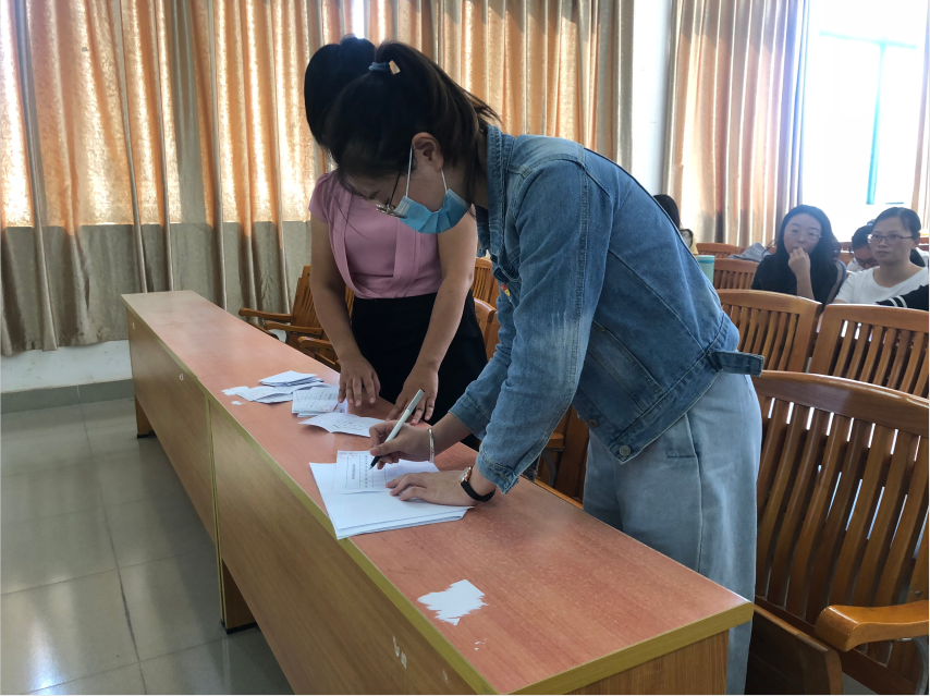 接着,会议讨论并通过了大会提交的支委候选人名单、选举办法以及监票、唱票、计票人名单。金副书记介绍了支委会候选人详细信息。根据《中国共产党章程》《中国共产党基层组织选举工作暂行条例》规定,会议严格按照选举办法,以公平、公正、公开为原则,采取无记名投票方式。在监票人的监督下,计票人对选票进行了现场清点、统计和宣布,从九名候选人中产生七名,并报送上级党委审批。