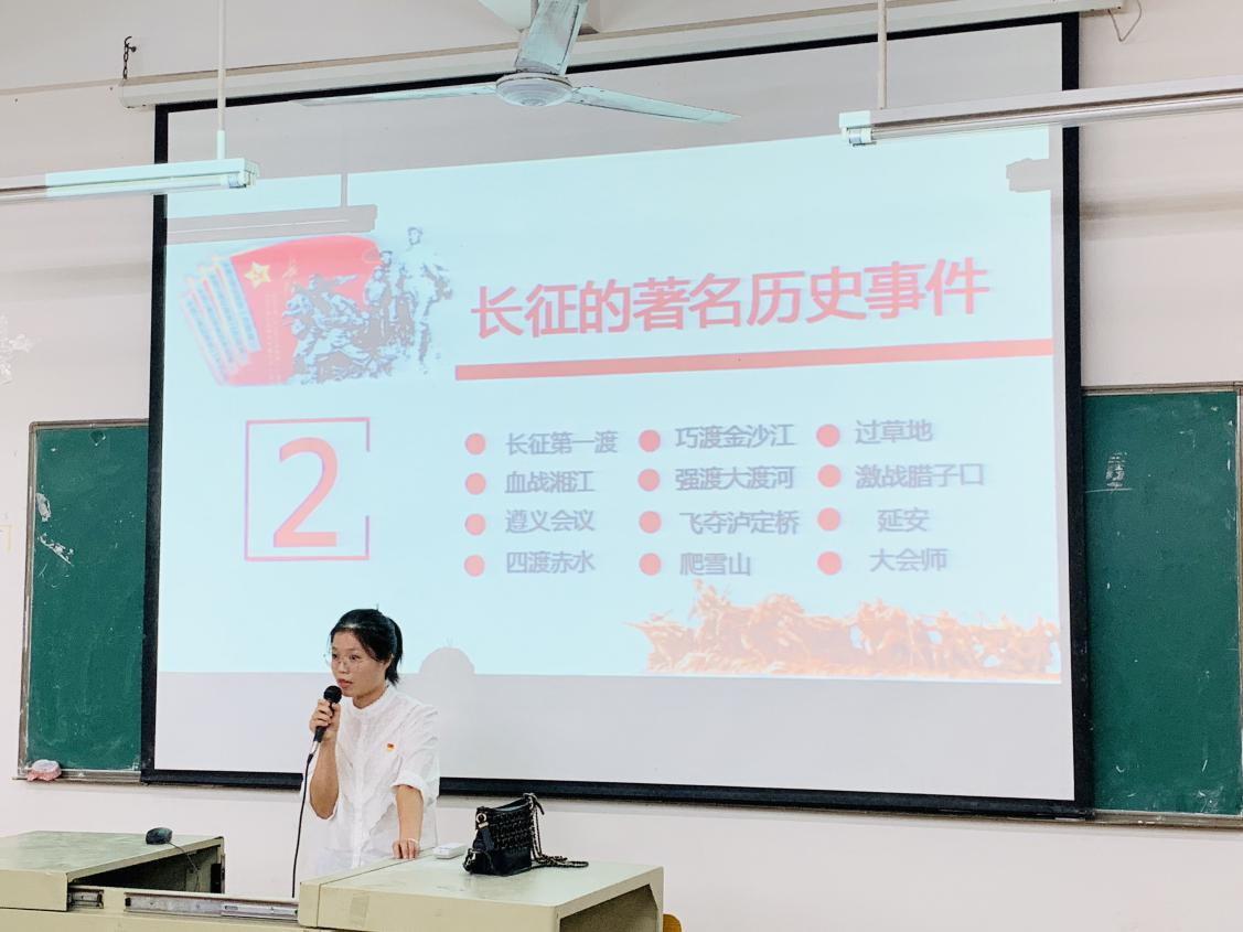 本次专题四由学生党支部副书记林汶樱老师主讲,她首先带我们回顾了长征的历史过程,让我们对长征有了一定程度的了解。尔后,她介绍了长征的著名历史事件,我们感受到长征精神的伟大以及红军的艰难困苦。紧接着,她向我们讲述了长征精神的意义,历史在前进,时代在发展,长征精神经过岁月的洗礼,历久弥新,在今日仍然保持着高度的借鉴意义和思想内涵,指引着我们‘‘不忘初心,牢记使命’’。最后,她希望我们都能走好长征路,树立坚定的理想信念,勇往直前。