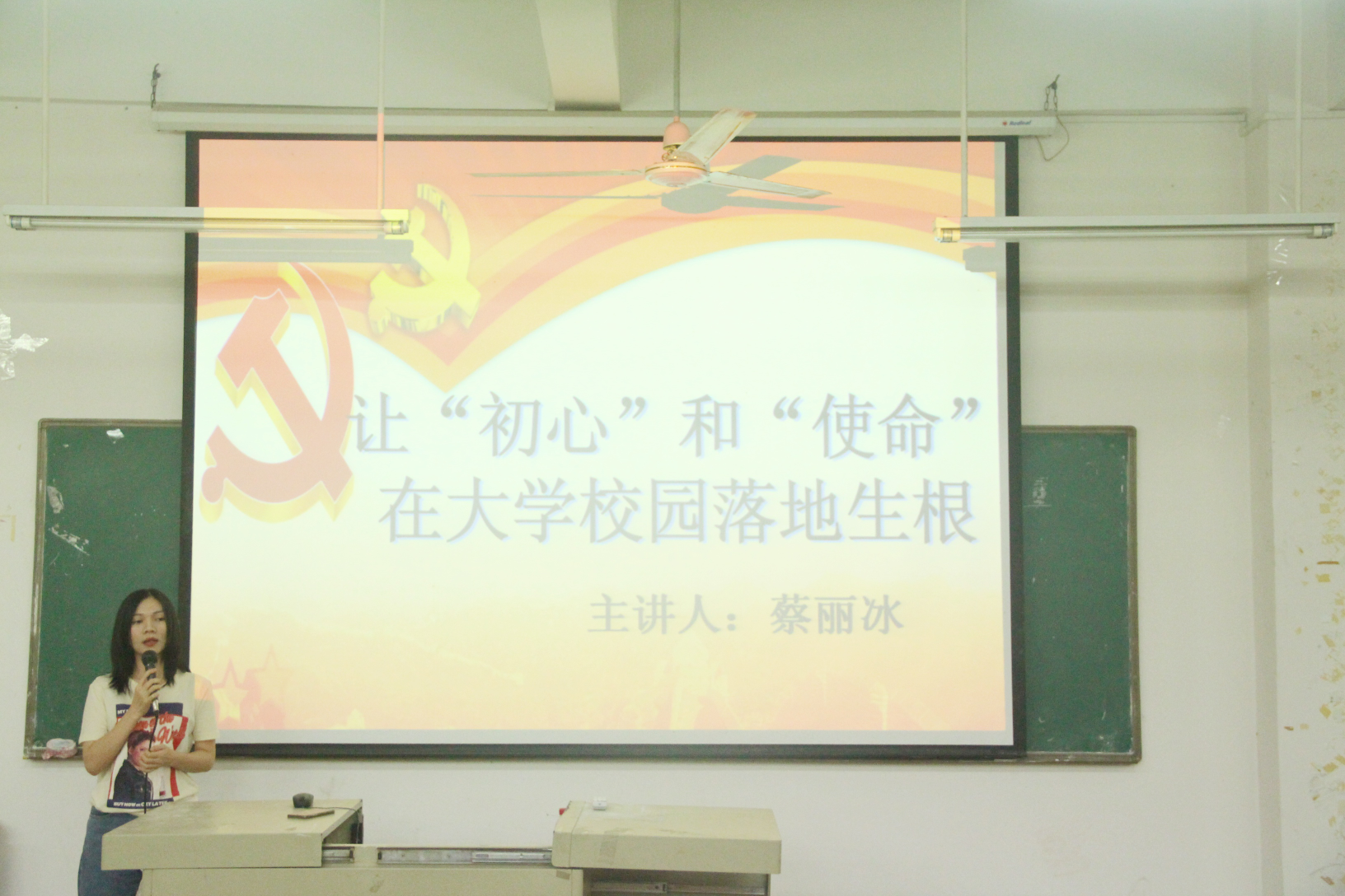 蔡丽冰书记围绕着“不忘初心,牢记使命的含义”“大学生初心和使命是什么”以及“作为当代大学生,如何做到不忘初心,牢记使命”这三个方面来展开演讲。