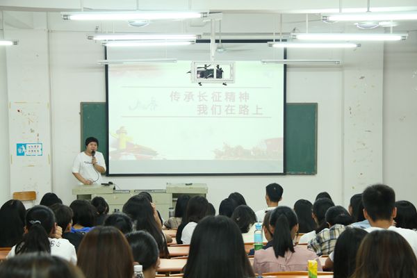首先,院学生党支部刘潇副书记就毛泽东《七律长征》为同学们展开“传承长征精神,我们一直在路上”的讲解,通过对长征的历史回顾,让同学们更加深入的感受到长征之途的艰辛,以及一系列的数据来深刻地展现红军的长征精神。紧接着刘副书记重点讲述了长征的著名历史事件及相关人物,举多个实例充分展现了共产党员不服输,不怕牺牲的精神。随后,通过分享习近平书记所提出的新长征之路精神,从生活小事学习长征精神。