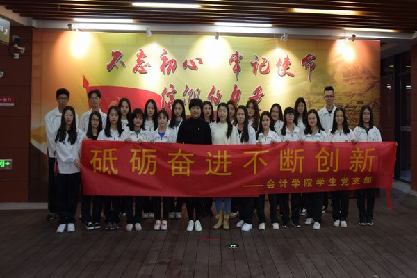 为进一步加深对党的十九大精神的认识,践行习近平中国特色社会主义思想,激发党员不懈奋斗的精神风貌;增强党员对历史文化的了解和爱国意识,提升文化自信,会计学院学生党支部郑傲然书记、刘潇副书记以及学生党员,于2018年11月27日下午14:00赴增城城市馆参观学习,顺利开展以“不忘初心坚定信念,砥砺奋进不断创新”的党组织活动。