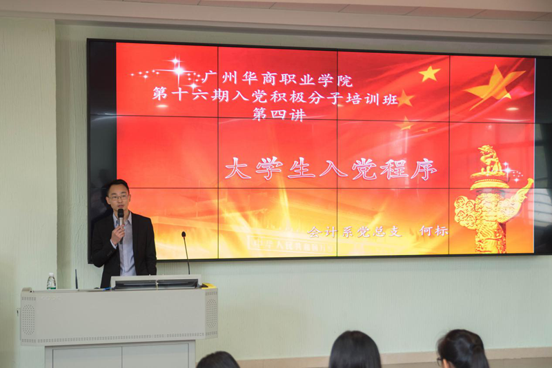 11月21日下午,我院第十六期入党积极分子培训班第四讲在博学楼C101隆重举行,与会人员有会计系党总支何标书记以及本期入党积极分子全体成员。