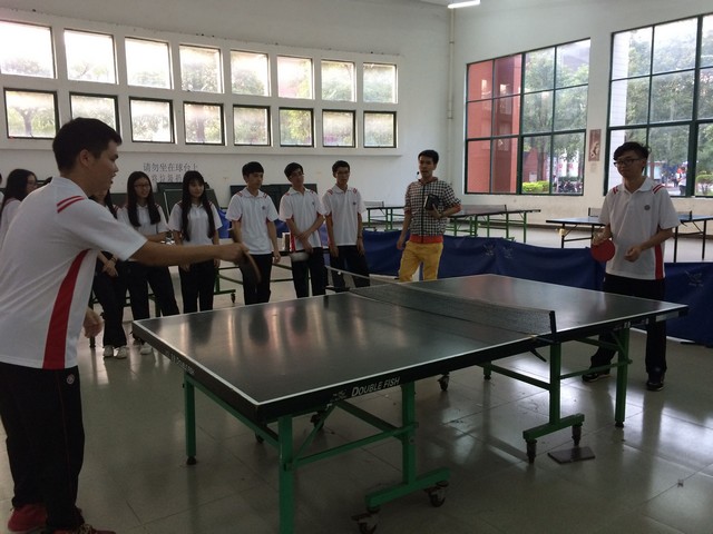 首先,由主持人宣布活动流程与游戏规则,流程一为乒乓球友谊赛,比赛规则为车轮淘汰赛,一共分为两组,两组各自派队员进行守擂比赛,在裁判员宣读详细的比赛规则之后,两方的队员便开始了龙争虎斗,各施绝技,小小的乒乓球伴着喝彩声,鼓掌声灵动跳跃,观看比赛的同学们不时为选手们的绝妙扣杀而欢呼。参赛的党员同志们都能以饱满的热情和高度的积极性全身心的投入到比赛当中去。在进行了接近一个小时的比赛里,最终由二队取得了最终的胜利。流程二为游戏环节——反常态,上场的队员听主持人的号令,并作出与号令相反的动作,做错则要接受惩罚,大家在欢声笑语中游戏。