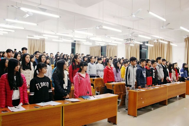 大会在庄严肃穆的国际歌拉开序幕。首先,罗琦琪老师就“入党程序与如何创造条件入党”展开了党章学习第一讲。她向学生讲解了发展党员流程的22个步骤及发展成为党员的五个阶段,并详细解说了学生成为培养对象应具备的基本条件,在培养期应该怎么做,以及确定成为发展对象的考察项目。同时,她要求学生在思想上,学习上,纪律上和综合能力上时刻做好准备,不断提高自身各方面能力,为早日加入中国共产党创造有利条件。