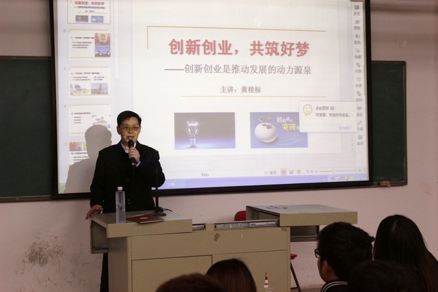 讲座中,黄桂标书记首先从目前国家宏观经济发展和大学生就业实际状况出发,强调了大学生创新创业教育的重要性及其意义。紧接着,黄书记列举了一些古今中外的创新发明,分享了一些身边学生的创业实例,借此鼓励同学们要向优秀的创新创业者学习,学习他们坚持不懈、敢于创新的精神,让创业梦想成为现实。最后,黄书记就其自身在科技、人文等各方面的创新意识、创意思维与现场学生进行了分享与互动,并呼吁同学们要大胆创新,勇于尝试。
