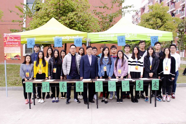 3月29日,在这春光和煦,风和日丽的日子里,会计系迎党务助理团(以下简称党务团)迎来了会计系第三届党章知识竞赛的摆摊宣传活动。在党务团指导老师何泽航的统筹安排下,党务团全体成员同心协力,以最高昂的工作激情、最勤恳的工作态度以及最饱满的热情为即将举行的党章知识竞赛开展宣传工作。