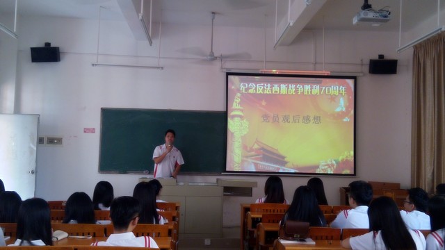 紧接着,由黄雪敏老师和谢梓灏老师分别对抗战历史进一步的阐述,同时对今后党员提出严格的要求,并对以后工作进行了详细的安排,希望党员们保持奋发向上的精神状态,保持共产党人的蓬勃朝气,树立远大理想。
