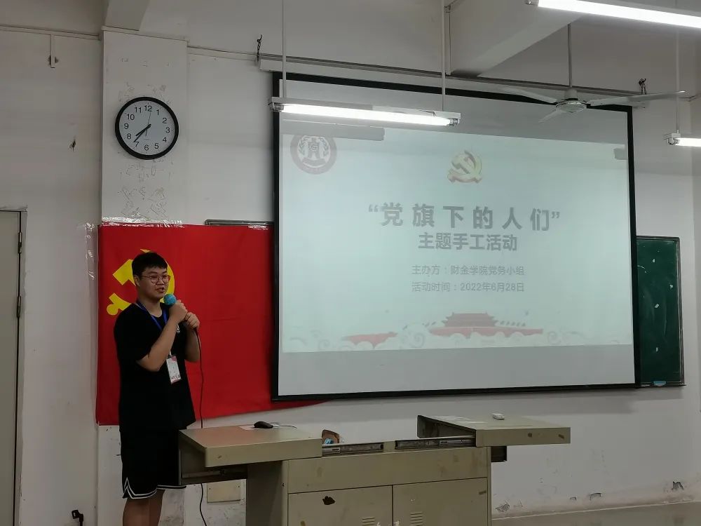 活动开始前,党务小组准备了卡纸、马克笔、剪刀等具手工制作的材料,通过以小组为单位完成主题活动绘画,绘画内容需含党旗元素、疫情防控志愿者、新时代人们日益提升的生活环境等。