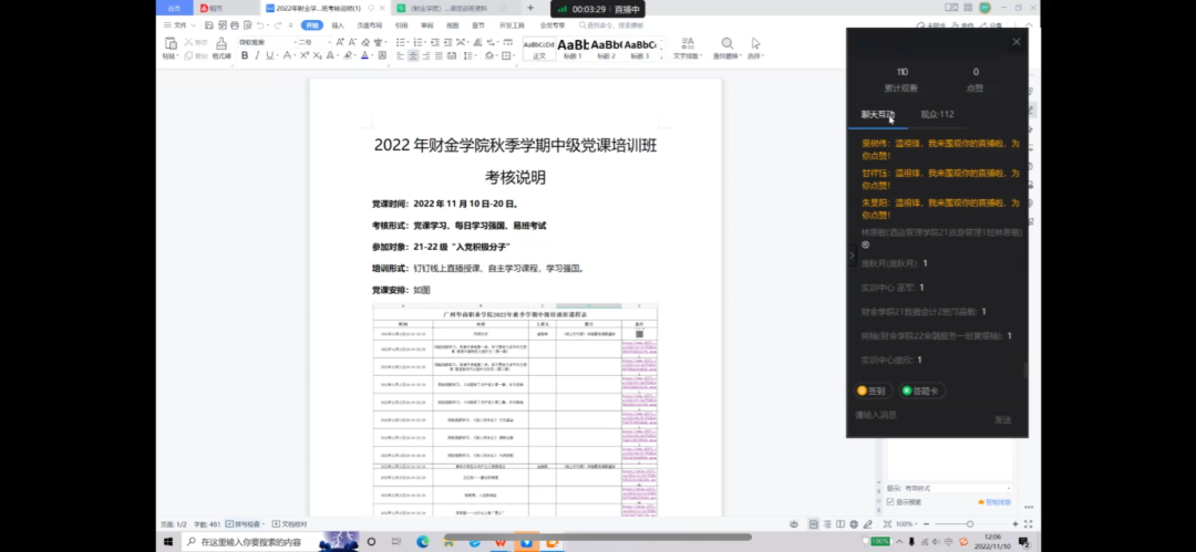 为了进一步扎实入党积极分子的党史学习教育,了解党的发展历程,财金学院于2022年11月10日、15日、16日与18日通过线上进行中级党课教育及考核。