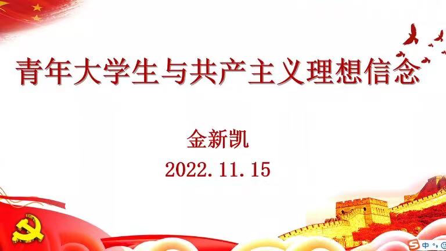 金新凯副书记为了让同学们更加深刻的了解大学生的青年大学生与共产主义理想信念,分别从“青年探寻救国路”、“青年挺起社会主义建设”、“青年引领中华民族伟大复兴”三个方面为同学进行深入得讲解。