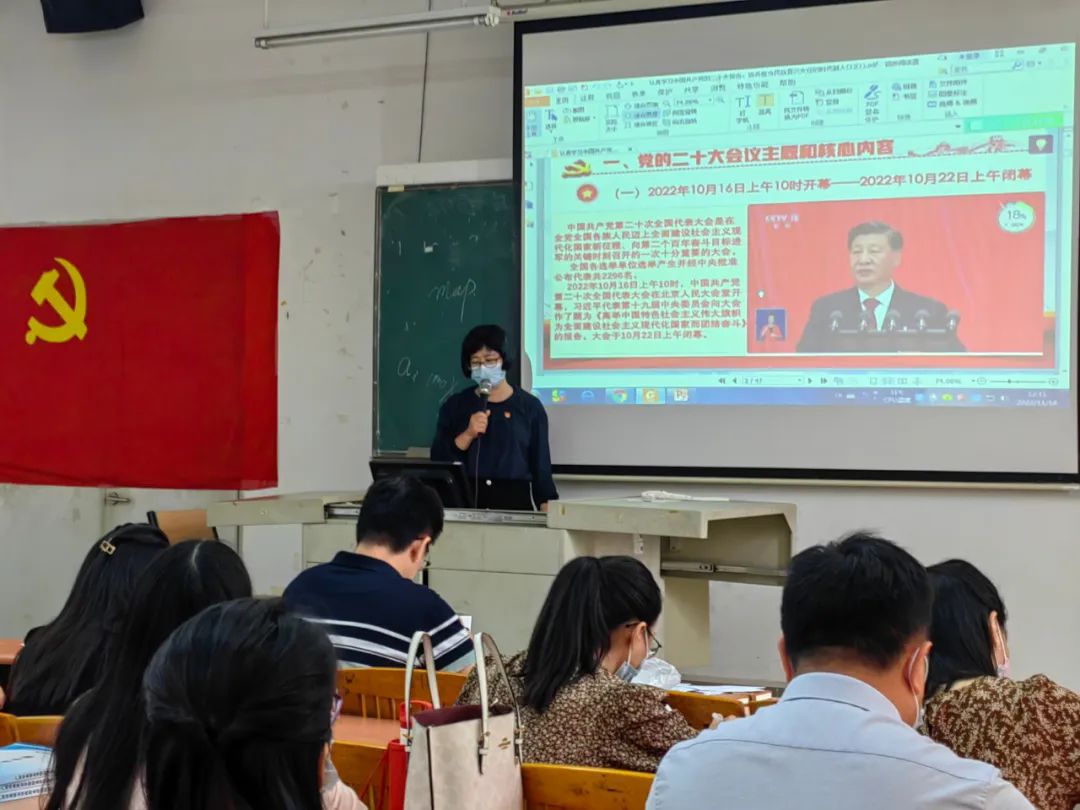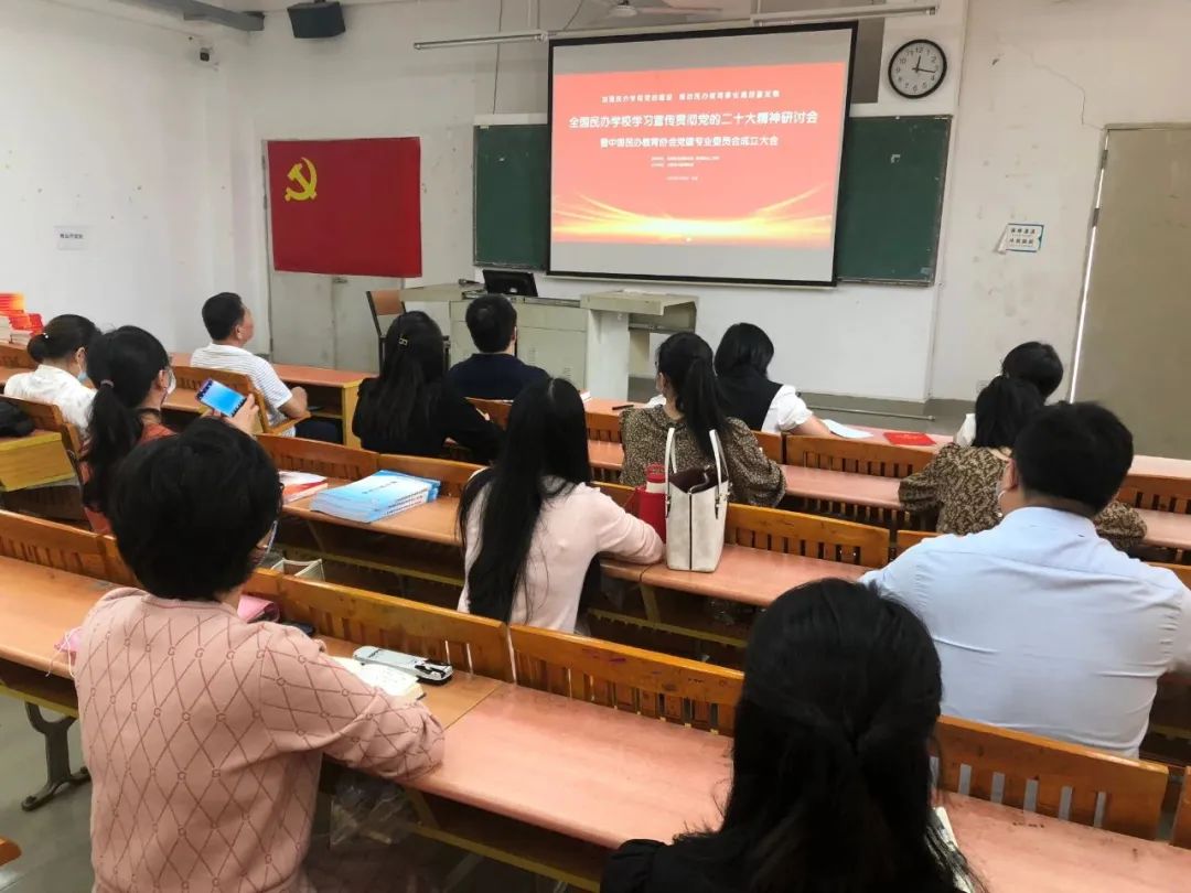 而后,为了解民办学校党的建设,更好推动民办教育事业的高质量发展,教师党支部陈少兰书记现场组织全体党员教师收看全国民办学校学习宣传贯彻党的二十大精神研讨会,同时带领老师学习了党的二十大报告重要精神。