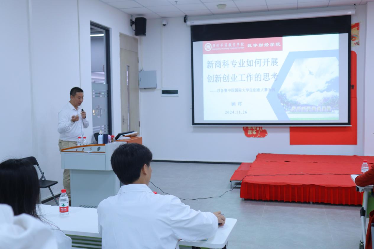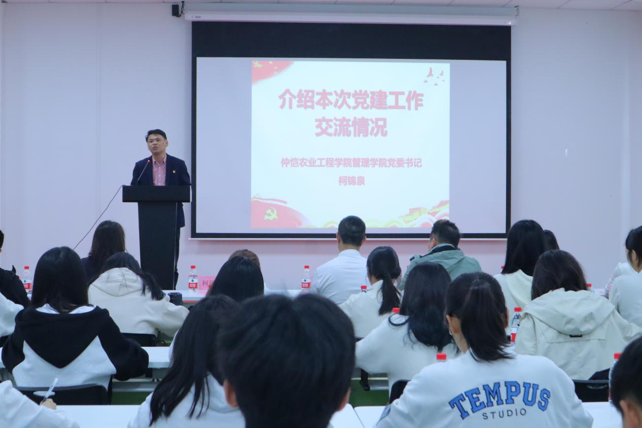 在交流环节,仲恺农业工程学院管理学院教师支部的陈建驰分享了管理学院教师样板支部的建设进展和成果;顾晖副书记则分享了数字财经学院在双创工作方面的经验。双方通过深入交流,不仅相互学习、共同提高,还拓展了党建工作和双创工作的新思路和方法,增进了彼此的了解和友谊。