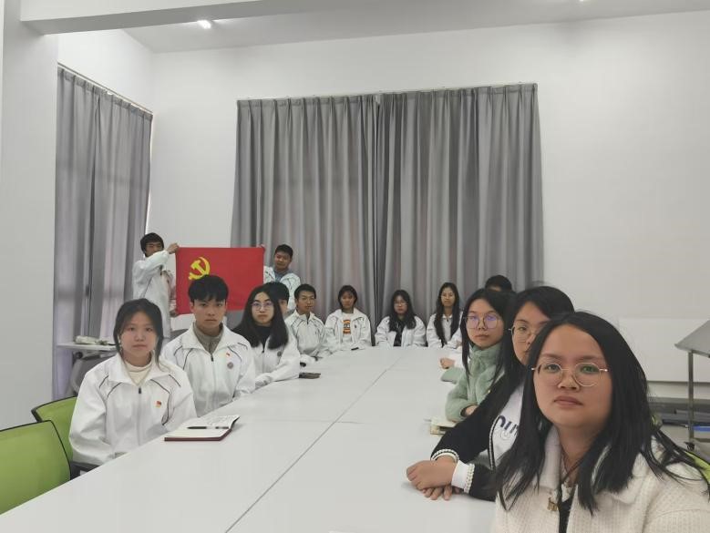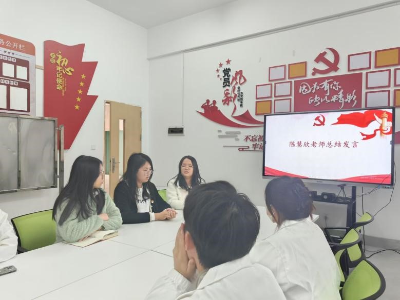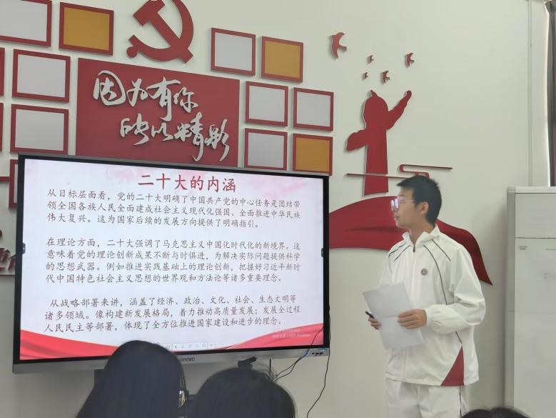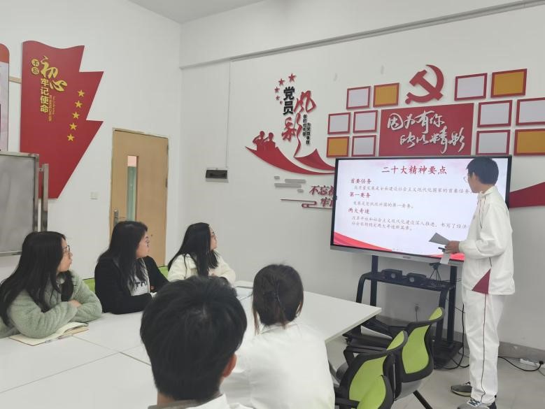 会议结尾,学生第二党支部书记陈慧欣老师总结到,我们要把二十大精神融入行动,身为学生,我们要把它融入日常,从身边小事做起,保持对知识的渴望,积极参与学习与实践,主动探索新领域,掌握新本领,为将来祖国出一份力。