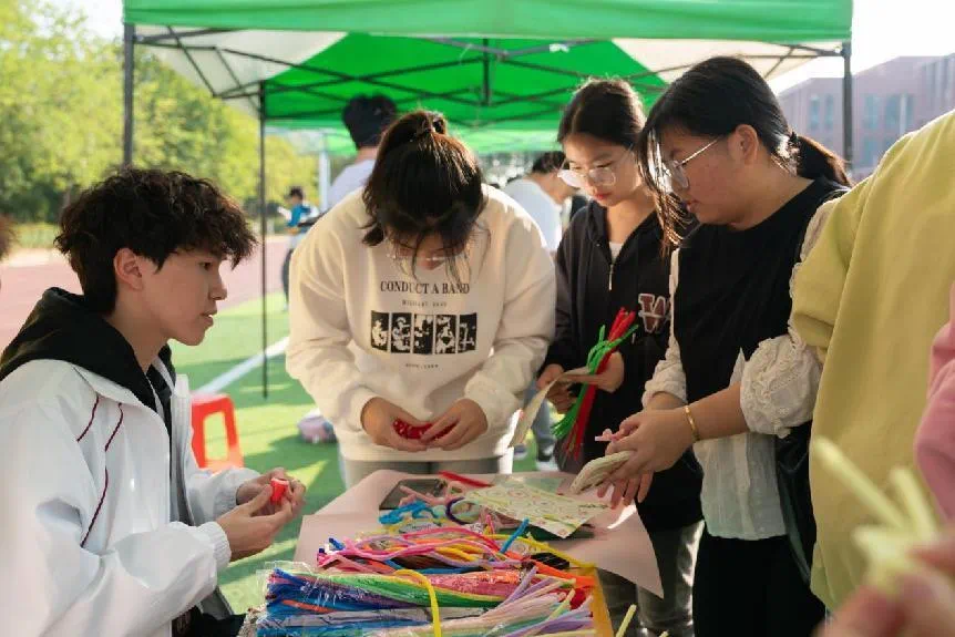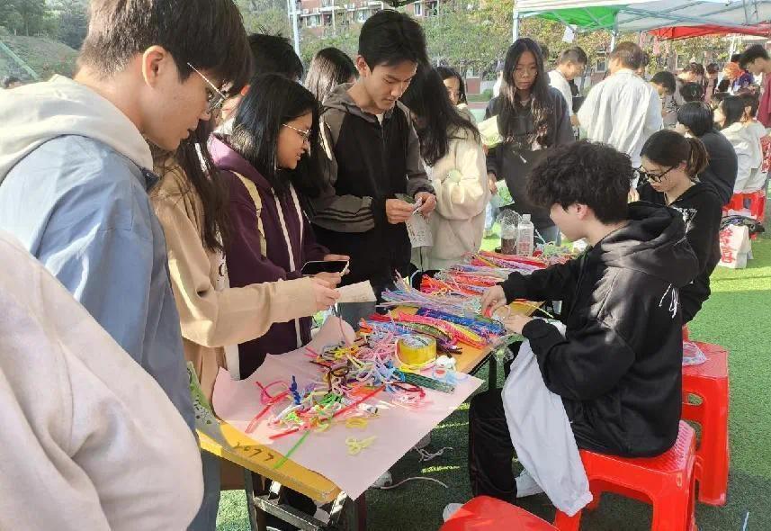 党务小组的摊位,也是全场的焦点之一噢~专心致志编织扭扭棒的同学们,眼中都闪烁着创意的火花,每一幅画面都如此动人。