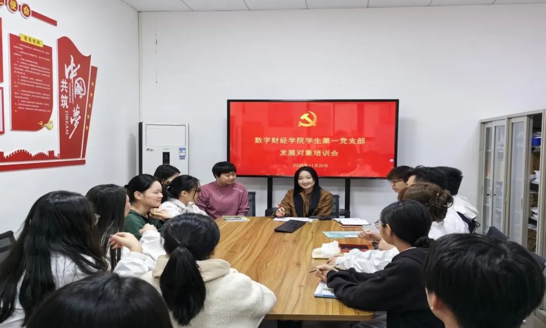 为进一步端正新一批发展对象的入党动机、提高党性修养及思想觉悟,数字财经学院学生第一党支部于2024年11月20日10:00在博学楼B509会议室召开了发展对象培训会。
