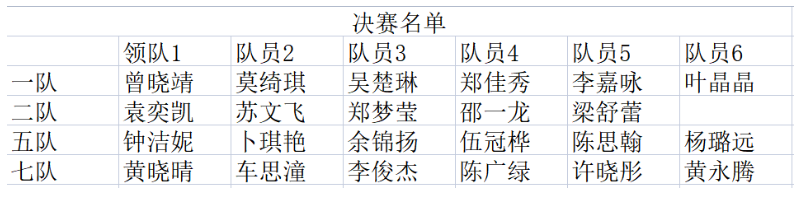 现将入围决赛的队伍名单公示如下:
