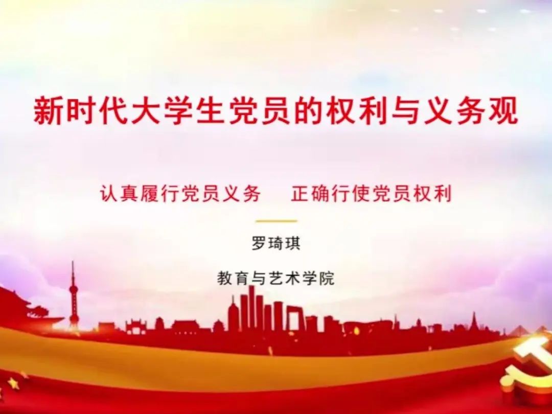罗琦琪副书记针对新时代大学生党员的权利与义务观,向同学们讲解如何认真履行党员义务,以及如何正确行使党员权利。为了让同学们更好的了解党员的义务和权利,罗琦琪副书记向同学们提出了问题,并列举出了几位经典人物。