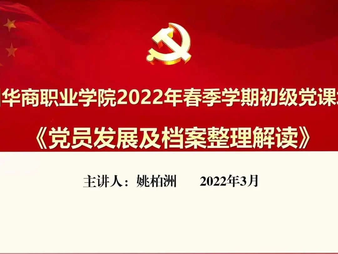 姚柏洲老师从“党员发展及档案整理解读”方面来给同学们进行讲解。他围绕党员发展流程、华职党员关键节点审核、华职党员档案材料说明这三个部分进行讲述。