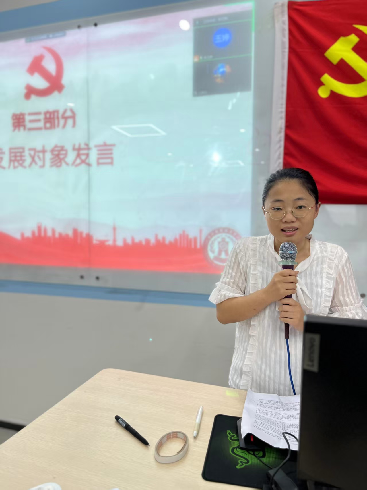 发展对象周柳颜同志汇报对党的认识、入党动机以及在学习、工作和生活中的表现,表示了将积极向党组织靠拢,为党的事业贡献力量的决心。