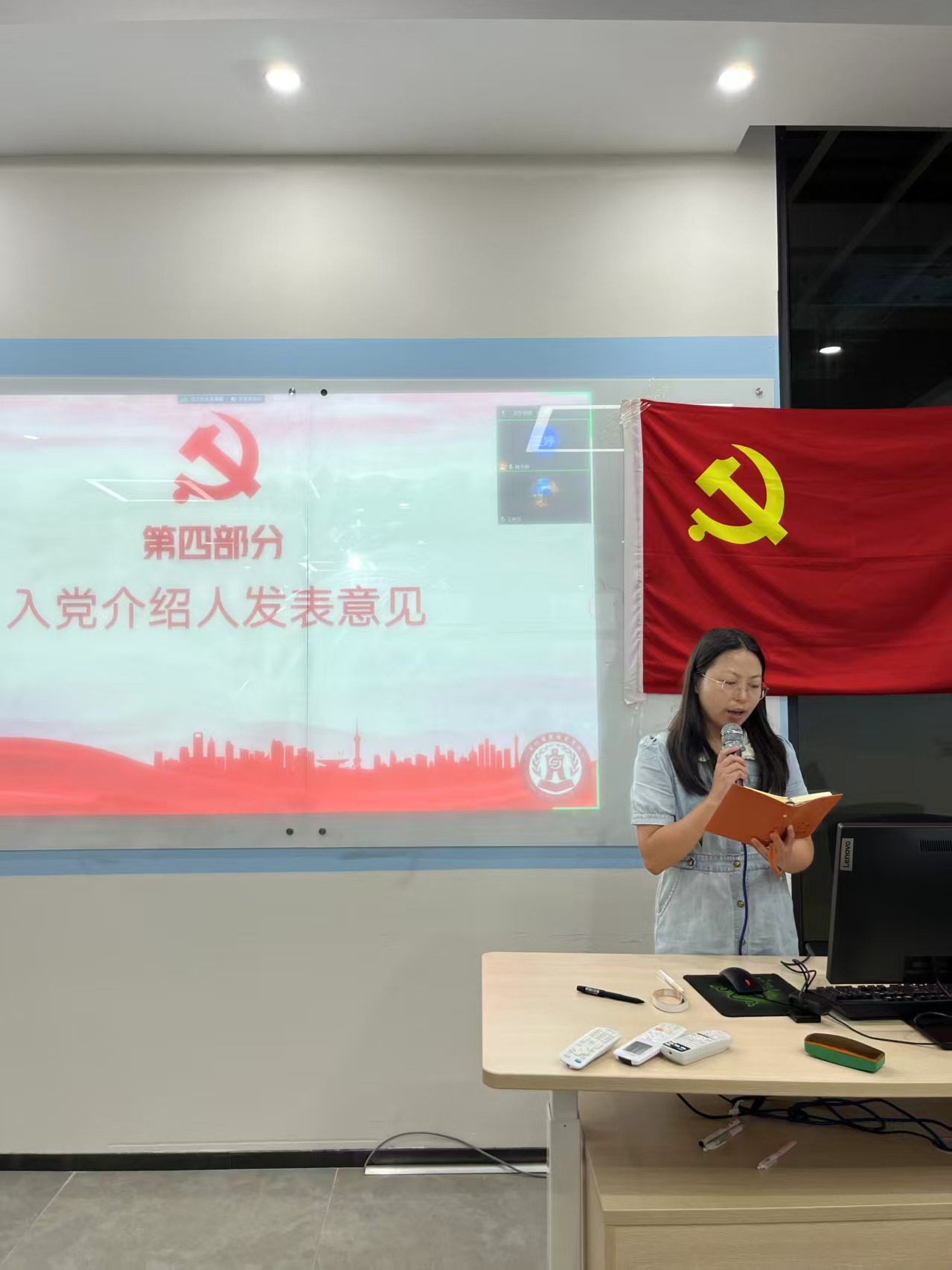 入党介绍人王溪同志、汤锦秀同志分别上台发表了意见,对周柳颜同志在各个方面的表现给予了肯定,并同意推荐其转为中共预备党员。