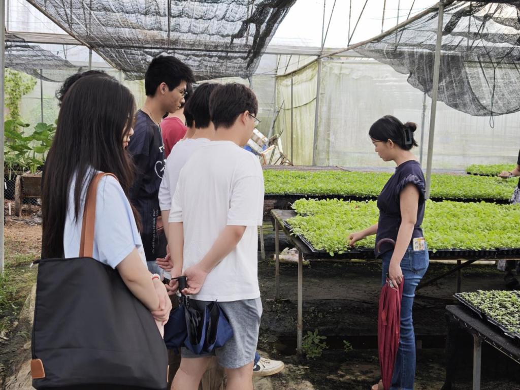 出发前,实践队召开筹备会明确安全准则与目标。7月9日抵增城区小楼镇约场村,与村委会座谈,听村书记介绍产业规划与需求。随后走进荔穗农业基地,初探“一粒米”全产业链奥秘,科技赋能农业图景令人振奋;还探访本地蔬菜基地,了解无土栽培与大棚种植技术突破自然限制,感受乡村产业多元化活力。