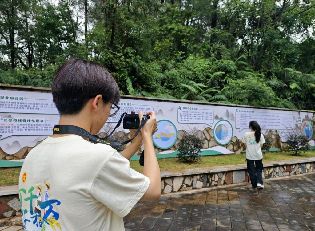 实践队重返北回归线青年林公园,用镜头记录乡村自然之美与发展活力。林间石阶、阳光光斑、村民休憩等画面,既定格独特地理印记,更诠释“绿水青山就是金山银山”的实践。队员们希望借影像让更多人看到“百千万工程”让乡村兼具“颜值”与“内涵”。