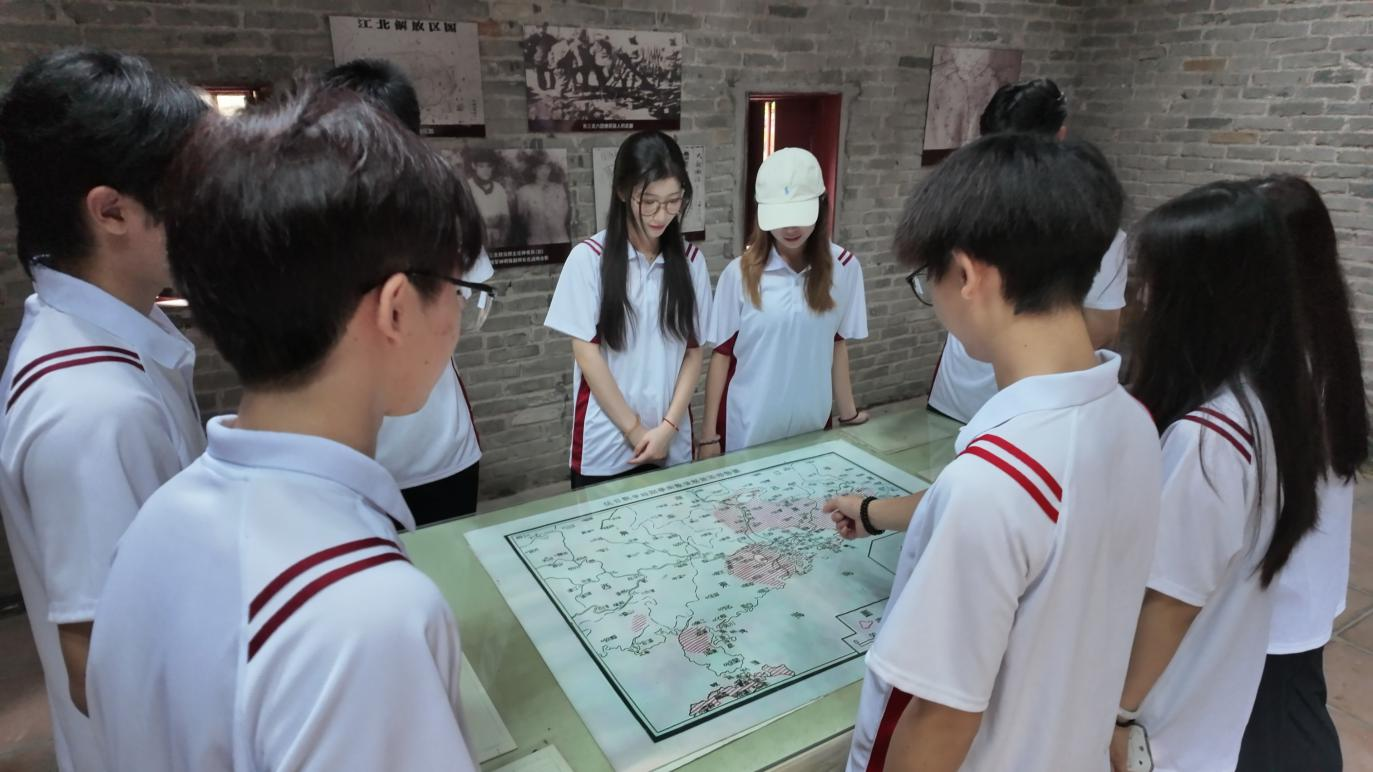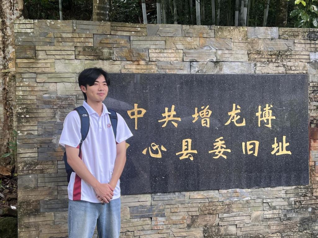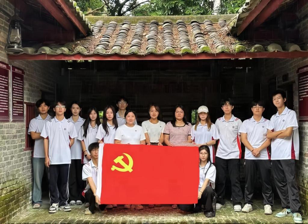 探访中共增龙博中心县委旧址。这座岭南建筑留存着抗战与解放战争时期的革命印记,曾是领导三县抗日救亡运动的核心阵地,先烈在此热血奉献。队员们从历史痕迹中感悟初心,坚定 “永远跟党走,奋进新时代”的信念。