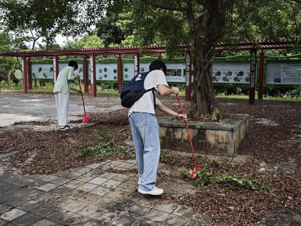 响应“建设宜居宜业和美乡村”号召,队员们在约场村北回归线青年林公园开展志愿清扫活动。这片能观测到“立竿不见影”奇景的土地,是自然的馈赠,需用心守护。队员们用脚步丈量乡土,用镜头记录生态之美,践行着“绿美广东青年先行”的承诺,让青春与绿意共生长。