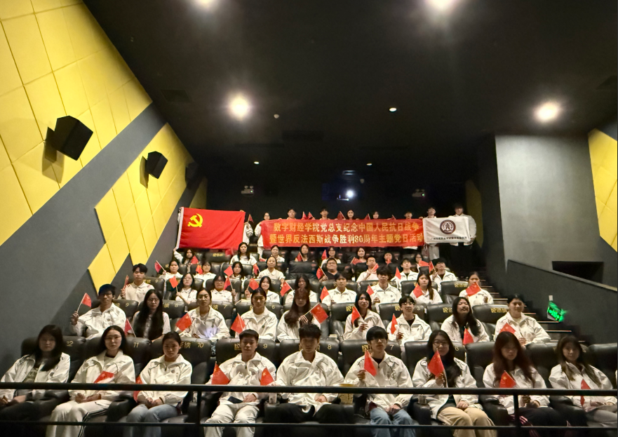 为深入学习贯彻习近平新时代中国特色社会主义思想,继承和弘扬新时代伟大抗战精神,引导师生党员铭记历史、砥砺初心、凝聚力量。数字财经学院党总支于2025年9月18日开展以“铭记抗战胜利史,砥砺奋进新时代”-纪念中国人民抗日战争胜利80周年为主题的主题党日活动,组织师生党员走进电影院观看影片《731》,参与人员有数字财经学院教师党支部党员以及学生第一党支部党员、入党积极分子共60名。