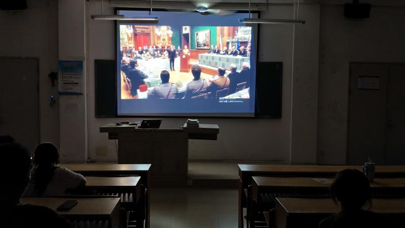 2025年10月16日,数字财经学院广州校区党务小组举办的“光影溯峥嵘,青春承薪火”红色观影活动在博B501顺利举行。135分钟的光影里,1919年巴黎和会的屈辱与抗争穿越时空,叩击着在场每一个人的心。 活动进行时 当天晚上18:30分,活动伊始,主持人以一组数据切入:“1919年,中国作为一战战胜国,5万华工远渡重洋参战;却在巴黎和会上,连山东权益的发言权都被列强剥夺。” 短短数语,将现场所有人的思绪拉回百年前的历史现场。 当顾维钧以怀表反讽日本贪婪,以“中国不能失去山东,就像西方不能失去耶路撒冷”的演讲震撼全场;当肖克俭带着请愿书冲进和会,最终以自焚明志呐喊“可以不要命,但不能不要脸”;当中国代表团拒绝在《凡尔赛和约》上签字的背影定格——历史的沉重与青年的热血交织成最深刻的课堂。 “弱国无外交”的烙印,让我们更懂今日国家尊严的分量;先辈“不甘受辱”的脊梁,为我们立起青春担当的坐标。 2025年的今天,我们以观影铭记1919的那段历史,以热血传承青年精神。愿每个同学铭记:唯有自强,方不负先辈热血;唯有担当,方无愧时代使命。 文:赵欣莹 初审:周冰娜 复审:杨芳 终审:顾晖