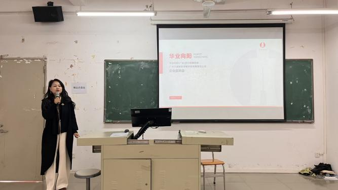 随后,企业宣讲环节正式开启。向喜平副所长结合行业发展趋势与企业战略布局,全面解读了华业向阳的企业文化、核心业务、发展平台及人才招聘需求;广州华商职业学院2020届优秀毕业生邱淑湘师姐则分享了自身职业成长经历,以实战经验为学弟学妹们提供求职指引与职场建议,干货满满、引人深思。