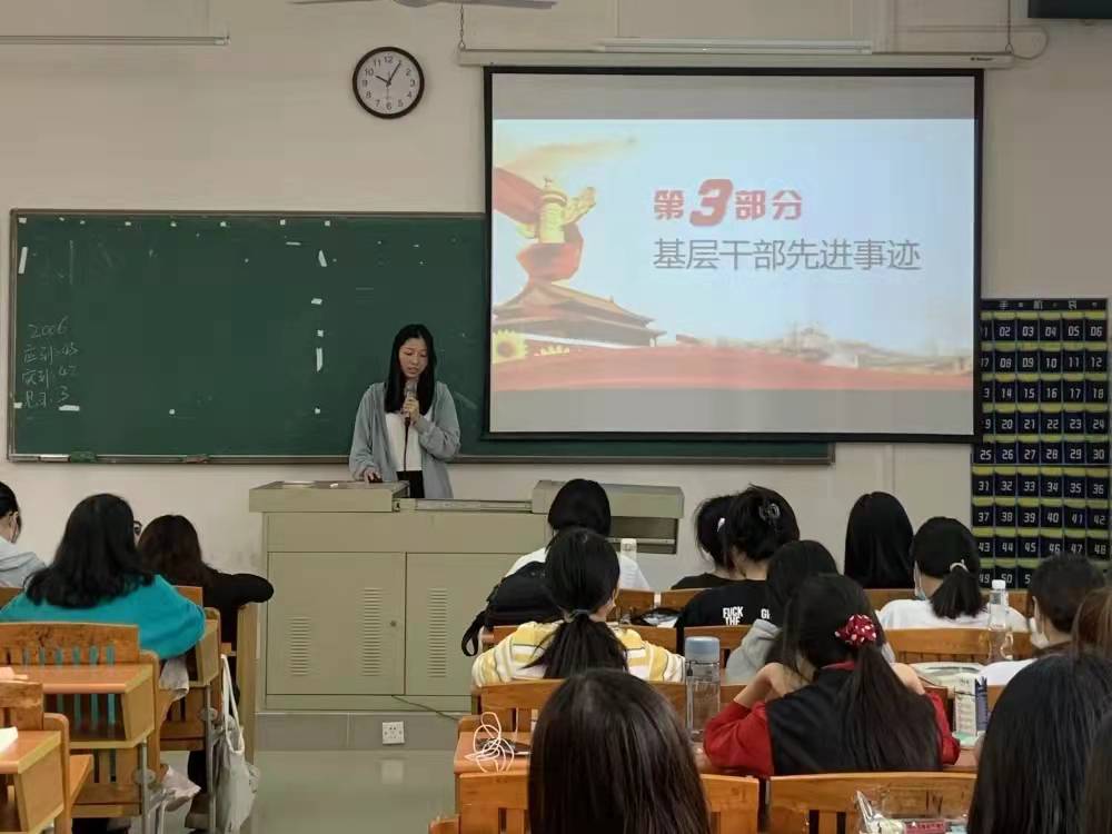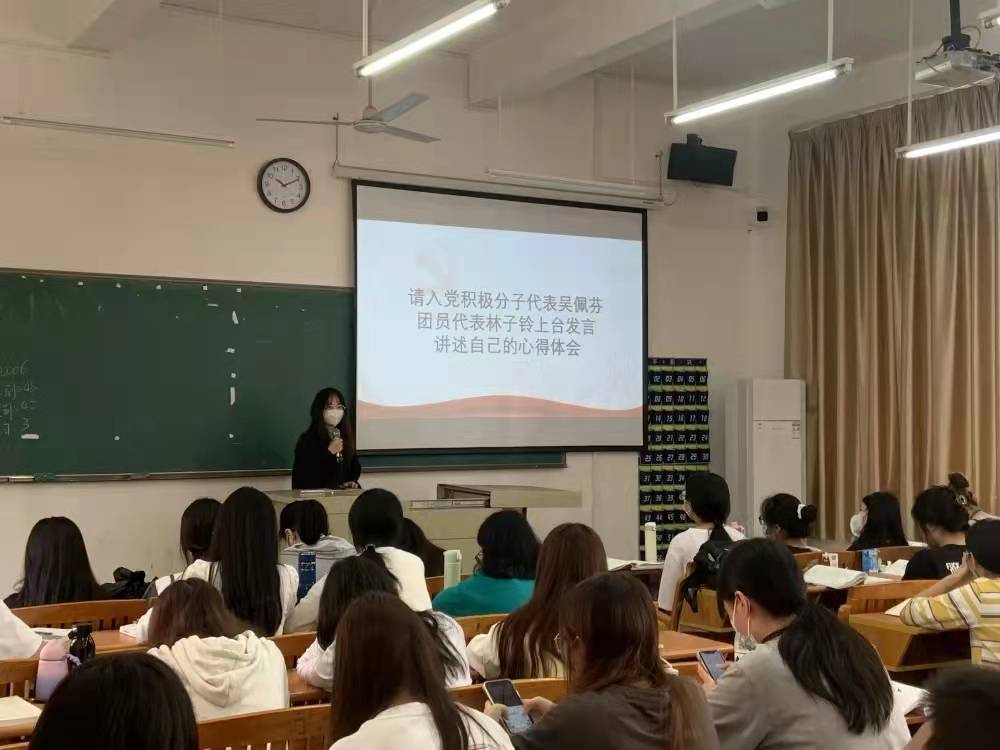 此次主题团日活动共分为四个部分。首先,团支书魏祖芳同学通过讲解和PPT展示,观看小视频等方式,向同学们展示了中国共产主义青年团的团旗、团徽和团歌等,并且全班通过视频起立深情演唱团歌《光荣啊,共青团》。