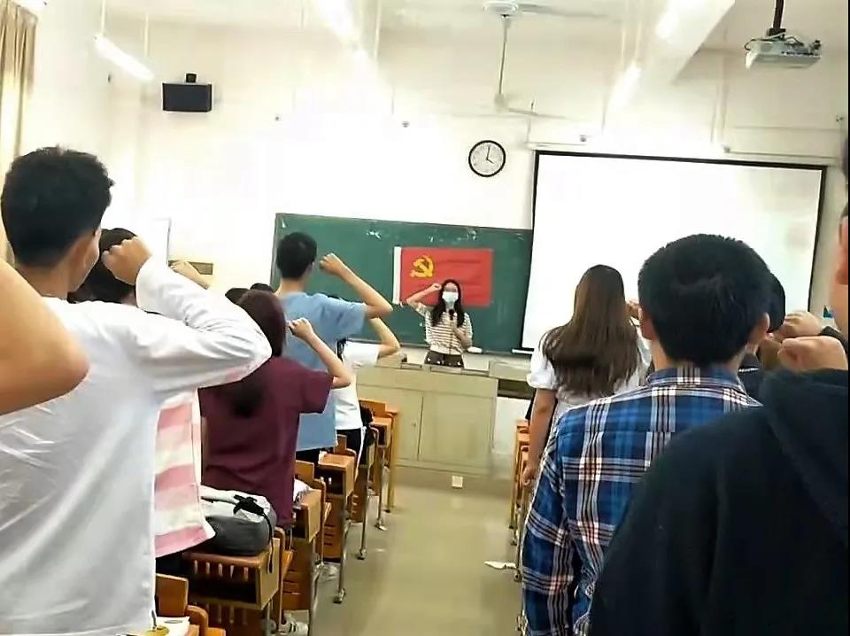 全体同学激情昂扬向党旗宣誓。最后由学生代表发表活动感言并签名合影,为此次团日活动画上圆满的句号!