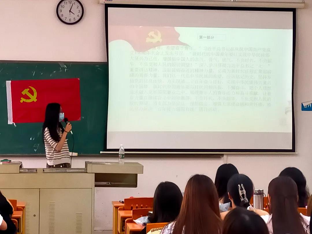 为响应广东高校“活力在基层”主题团日竞赛的号召,让同学们了解百年奋斗的光辉历史,充分发挥党史教育示范、熏陶作用,引全校师生了解党的光辉历程,学习党史,广州华商职业学院财金学院21级数据会计3班于2021年11月5日,在博学楼C504教室,开展“百年接力,强国有我”主题团日活动。