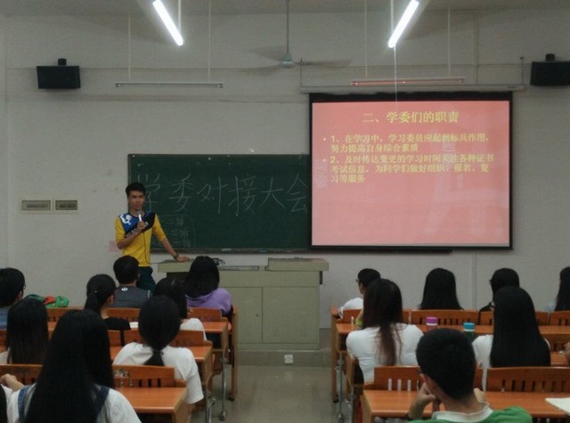 首先,谢梓灏老师介绍了会计学会与学位的关系结构图。会计学会和学委的关系是密切:会计学会的干事对接工作是各班的学委,学委面对的是班里的同学,这样层层的联系,形成了信息传达的纽带。接着谢梓灏老师围绕了学委的职责,阐述了对学委的自身要求。学委在班上应当起到标兵的作用,带动同学们遵守课堂纪律,遵守学校规章制度,积极、努力学习,不断提高自身的理论与实践能力。同时谢梓灏老师也强调了考证工作上应注意事项和考证的准备工作,学会的干事应与学委做好对接工作,学委应及时的将相关信息传达给班上同学,并及时反馈班里的情况,以增强考证以及学习方面的监督。最后,谢梓灏老师向大家介绍了会计学会会员的福利,希望同学们踊跃参与学会举办的课外活动。