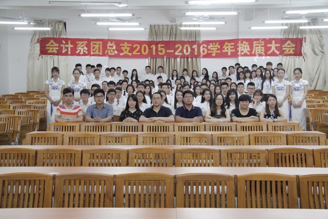 会计系于2016年6月16日在博学楼C401隆重召开“会计系第六届团总支总结暨换届大会”出席本次大会的领导嘉宾有系团总支书记姚柏洲老师以及八大组织各指导老师和会计系八大组织成员。
