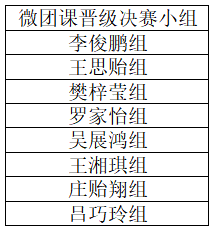 激烈的选拔后,经过团支书及各位评委的精心评选,最终遴选出以下八组杰出的团队晋级数字财经学院微团课决赛。