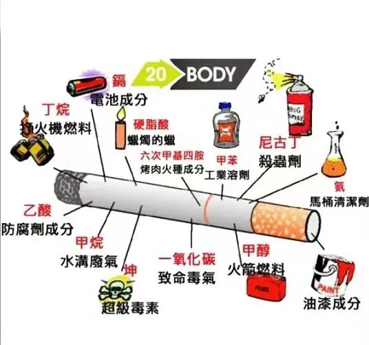 心率加快,血压升高。血管收缩,血脂增高。损伤脏腑,刺激大脑。久而久之,危害不小。咳痰吐痰,成疾成痨。花钱受罪,自找苦吃。烟有百害,而无一利。吞云吐雾,伤害身体。污染环境,损人害己。劝瘾君子,戒烟勿吸。