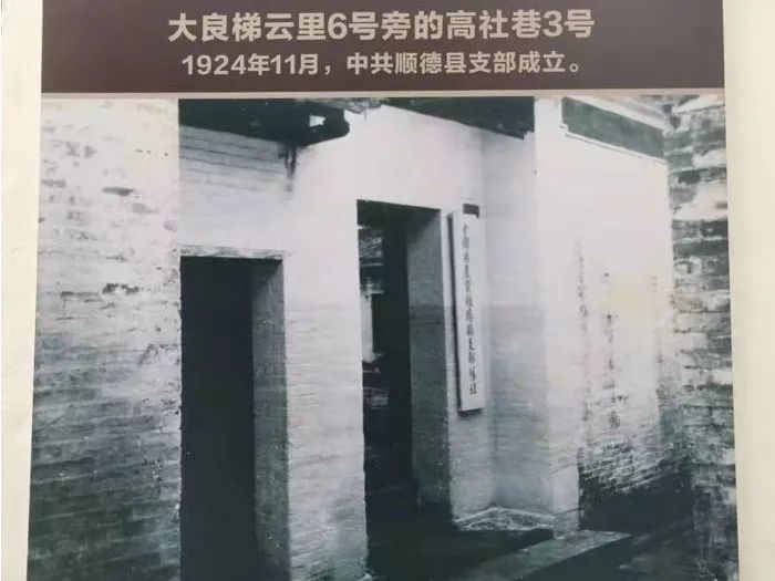 1924年中共顺德县支部成立,成为顺德中共党组织的最早基地。此后,顺德党组织从这个原点发展,成为推动顺德革命历史的最重要力量。1926年秋,中共广东区委派阮啸仙主持改组顺德支部。改组后,韦人隽任书记,支部下设工人运动、农民运动、国民运动三个委员会。此后,在中共党组织领导下,顺德工农运动迅速发展,1927年后,机关转移到伦教霞石。