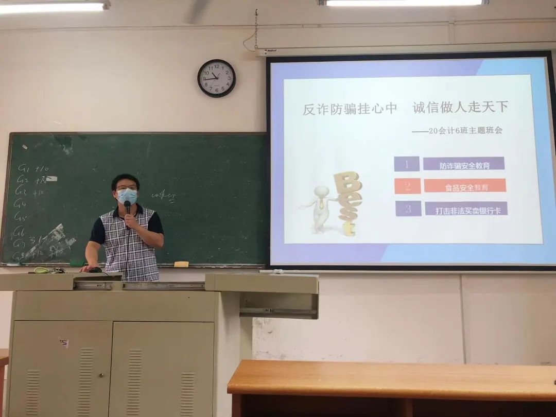 此次主题班会各班主任首先重点向同学们讲述诚信教育、预防诈骗教育、远离不良贷、套路贷等内容,将防骗意识融入学生日常管理,使诚信教育入心入脑;其次也重点结合了金融常识向同学们普及银行卡断卡行为的相关内容,提升了同学们在学习生活中的自我预防、自我保护、自我应对的能力。