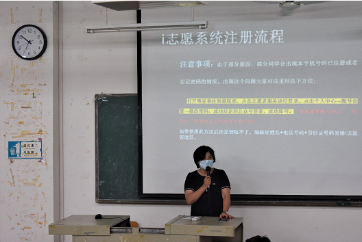 尔后,学生干部为大家讲述工作的安排和流程以及讲解了“i志愿“系统注册的相关事项,随后,梁文辉老师也补充了“i志愿”的具体用途。