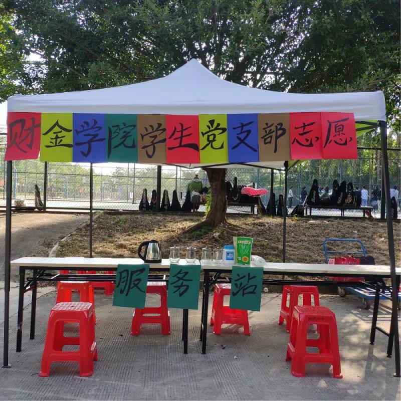 为发扬财金学院学生党支部的志愿服务精神,更好的帮助新生,财金学院学生党支部“党员志愿服务站”在新生军训操场再次上线,为新生送上关怀。