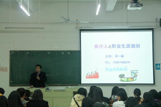 在讲座中,邓一帆老师提出会计人员要树立“诚信为本,操守为重,坚持准则,不做假账”的诚信品质。接着讲述了会计人员应具备以下几点要求:宽阔的视野和强烈的创新意识、掌握专业知识、熟悉会计惯例、有较强的社交能力和政治思想等基本素质。随后,邓一帆老师还详细地讲解了作为一名会计专业的学生应如何准确有效地规划自己的职业生涯。最后建议同学们要有明确的目标,并且要有理性和自我约束的能力,合理安排好自己的学习生活,提高自己的学习效率。