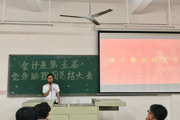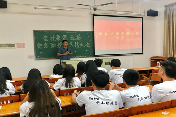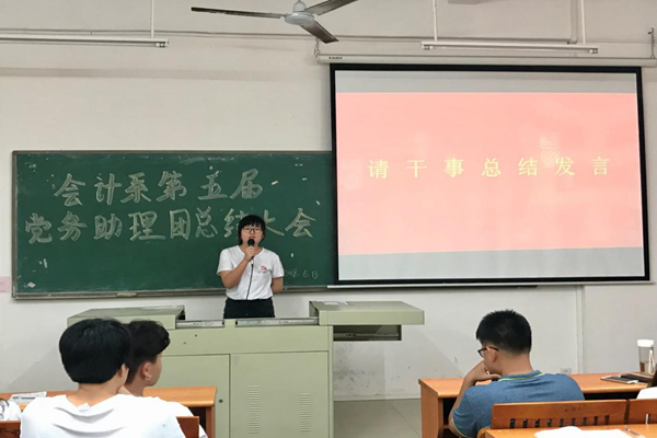 2018613日晚上,会计系党务助理团在博C203隆重召开“会计系第五届党务助理团总结大会”。出席本次会议的有指导老师姚柏洲老师以及第五届党务助理团全体成员。